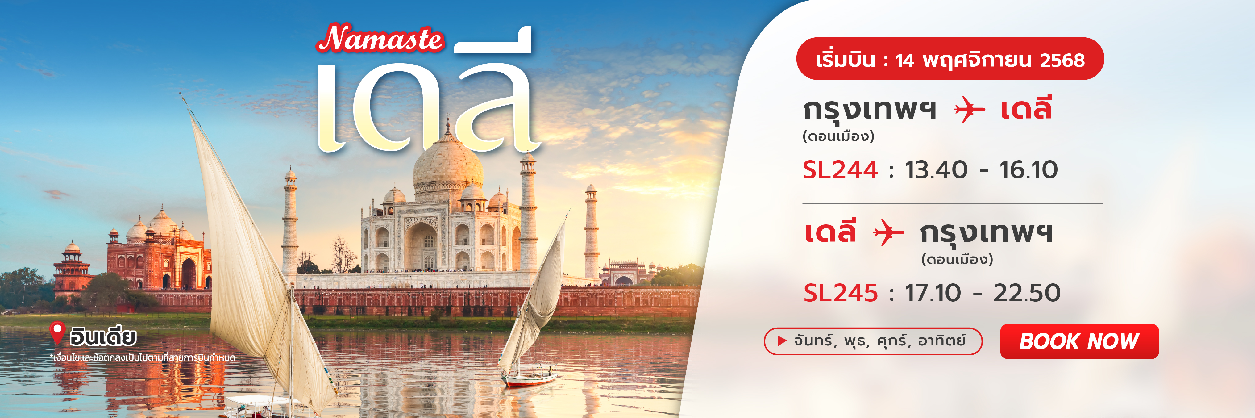 บินตรง กรุงเทพฯ (ดอนเมือง) สู่ เดลี ประเทศอินเดีย จองเลย