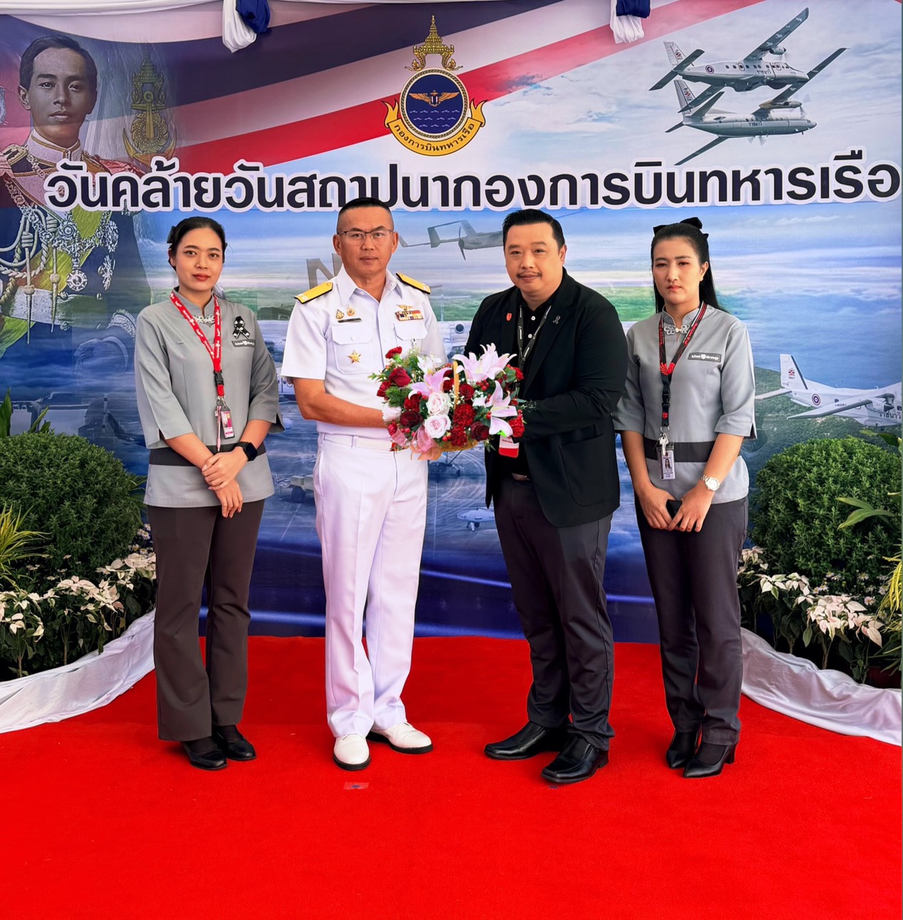 นายภูวศิษฐ์ วีรศักดิ์พรกุล ผู้จัดการสถานีอู่ตะเภา และตัวแทนพนักงานประจำสถานี ได้มอบช่อดอกไม้แสดงความยินดีให้แก่ พลเรือตรี พิทักษ์ เทพทา ผู้บัญชาการกองการบินทหารเรือ เนื่องในโอกาสวันคล้ายวันสถาปนากองการบินทหารเรือ ณ ท่าอากาศยานนานาชาติอู่ตะเภา ระยอง – พัทยา