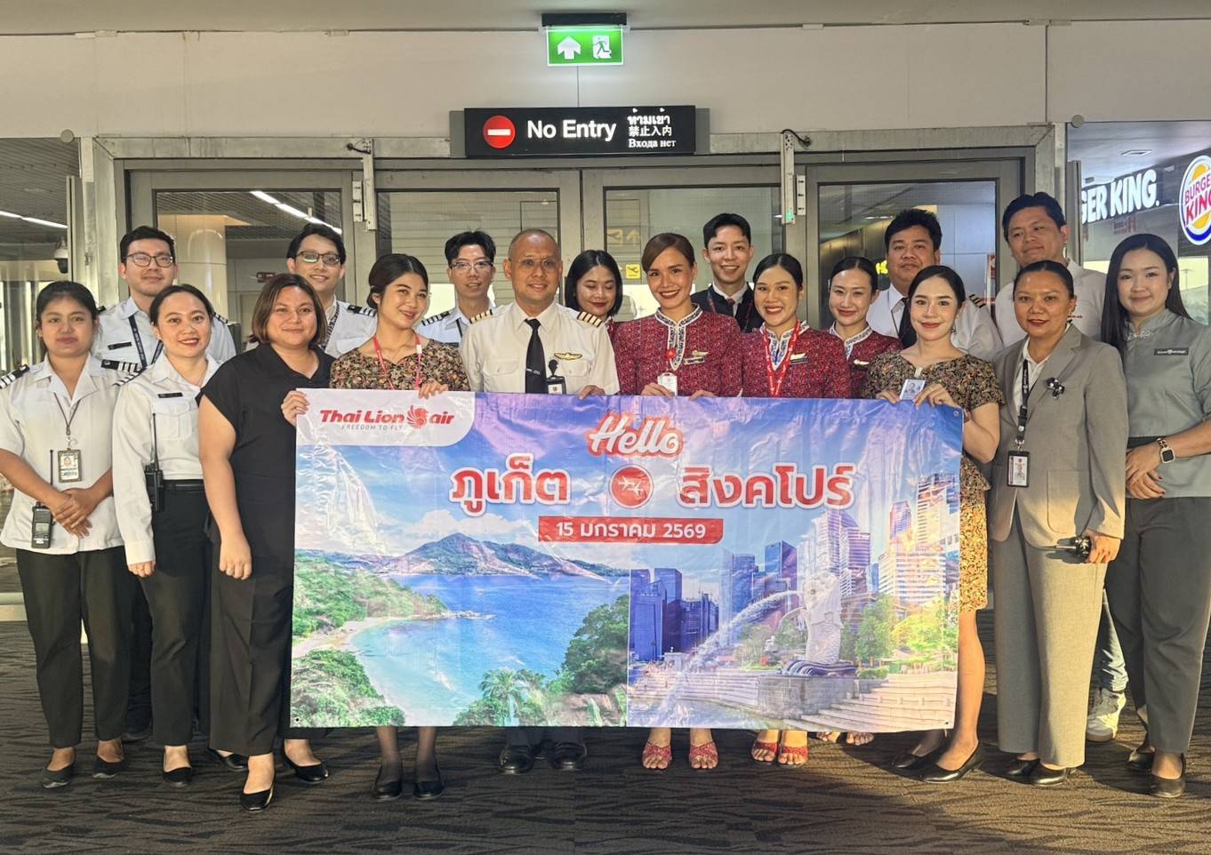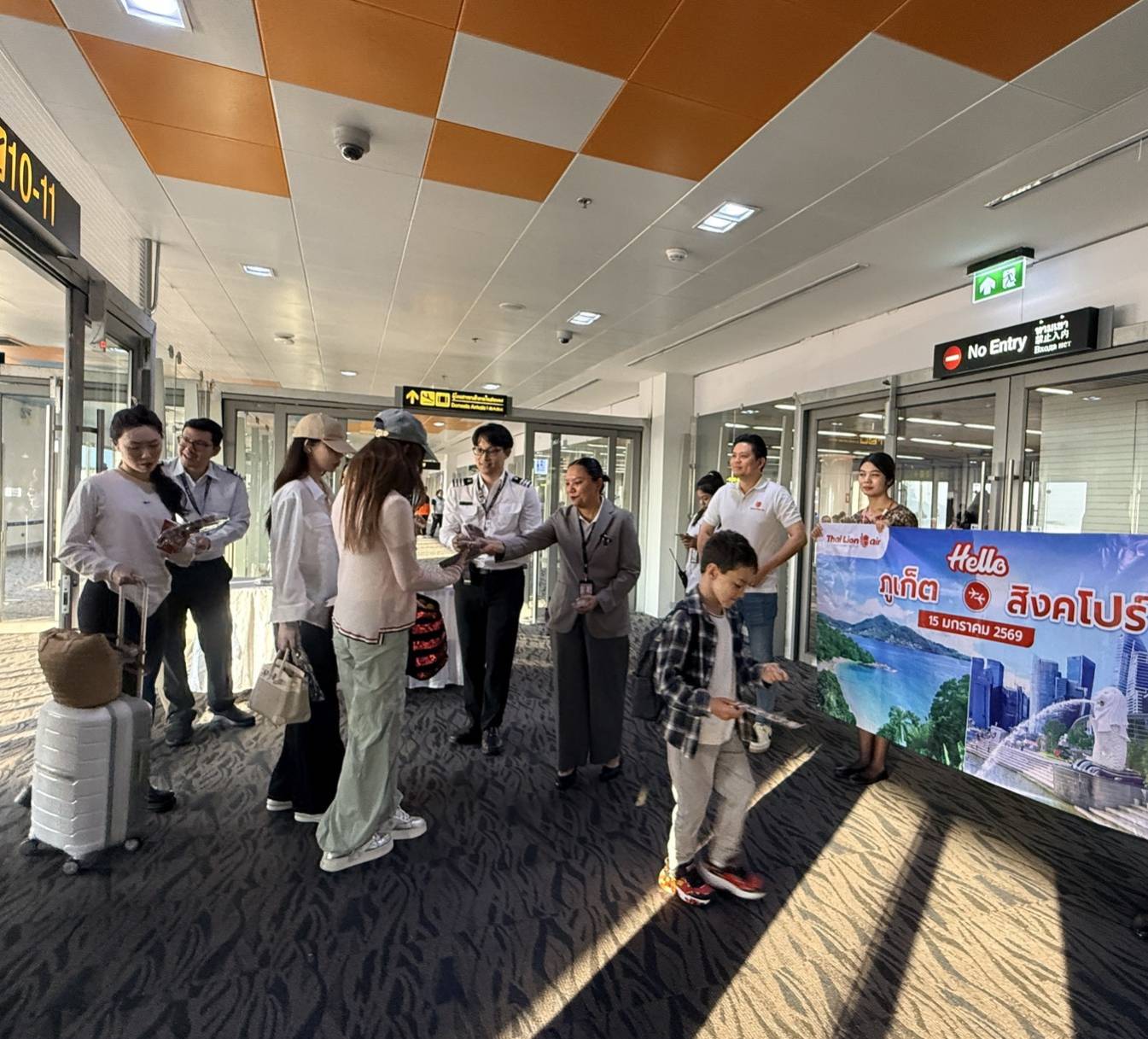 ทั้งนี้ได้รับเกียรติจากนางสาวภัทรมน แสงเจริญ ผู้จัดการสถานีภูเก็ต นายจุฬา ทวีปรีดา ผู้จัดการฝ่ายขาย และตัวแทนพนักงาน สายการบินไทย ไลอ้อน แอร์ ทำการเปิดเที่ยวบินปฐมฤกษ์เส้นทางบินภูเก็ต – สิงคโปร์ พร้อมมอบพวงกุญแจ เป็นของที่ระลึกแก่ผู้โดยสารขาออกสู่สิงคโปร์ เที่ยวบินที่ SL 102 บินตรงจากท่าอากาศยานภูเก็ต สู่ท่าอากาศยานนานาชาติชางงี